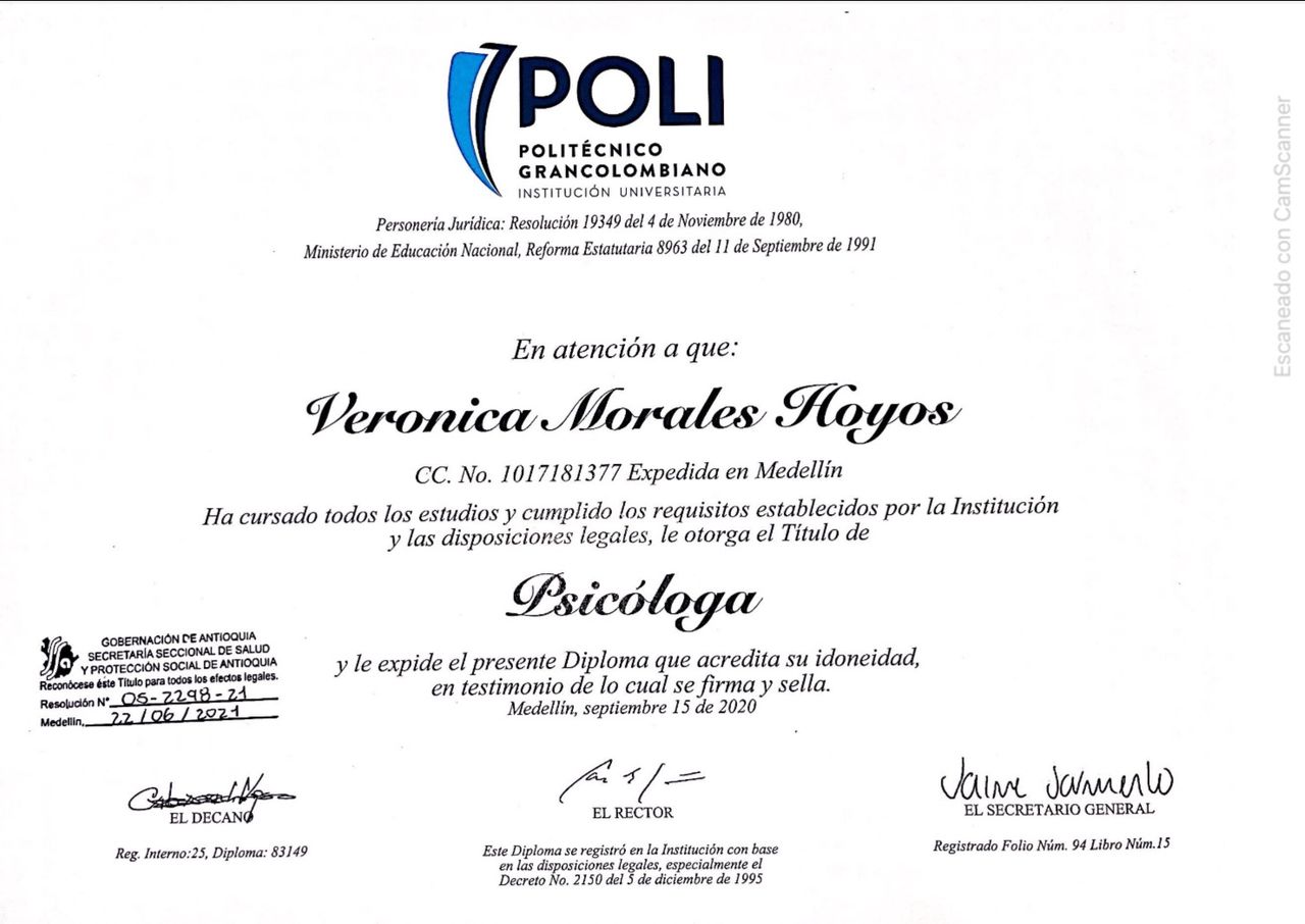 Hola, Soy Psicóloga con especialización en psicología clínica. Atiendo con profundo respeto a adolescentes, adultos y parejas, de forma presencial en Medellín y virtual para quienes se encuentren en cualquier parte del mundo.